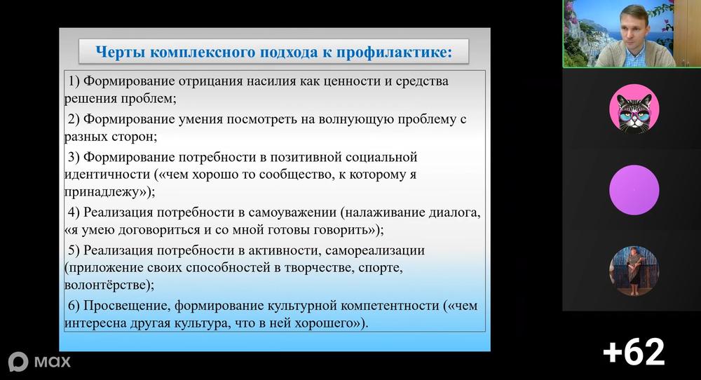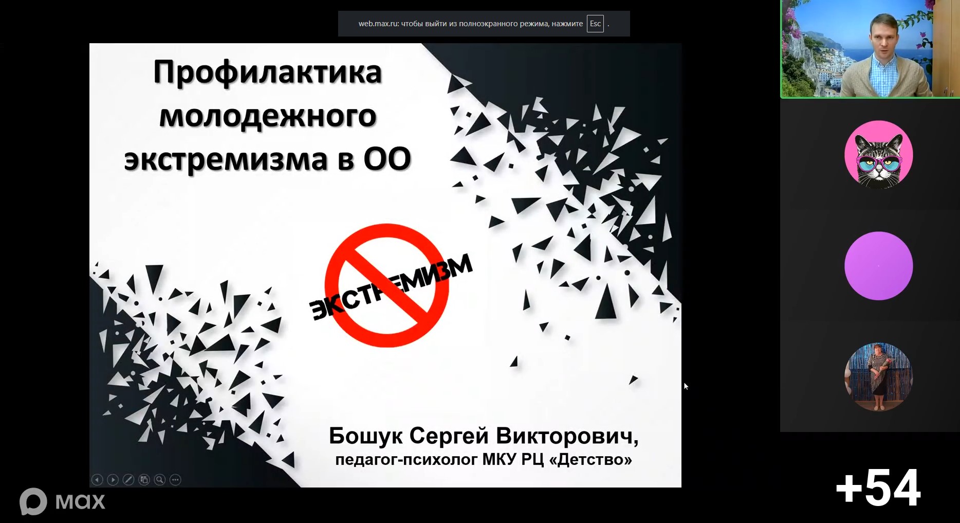 30 октября 2025 года в МКУ РЦ «Детство» на платформе Сферум был проведен семинар для педагогов-психологов и социальных педагогов ОО на тему «Профилактика молодежного экстремизма в образовательных организациях». Участниками семинара стали 92 специалиста.