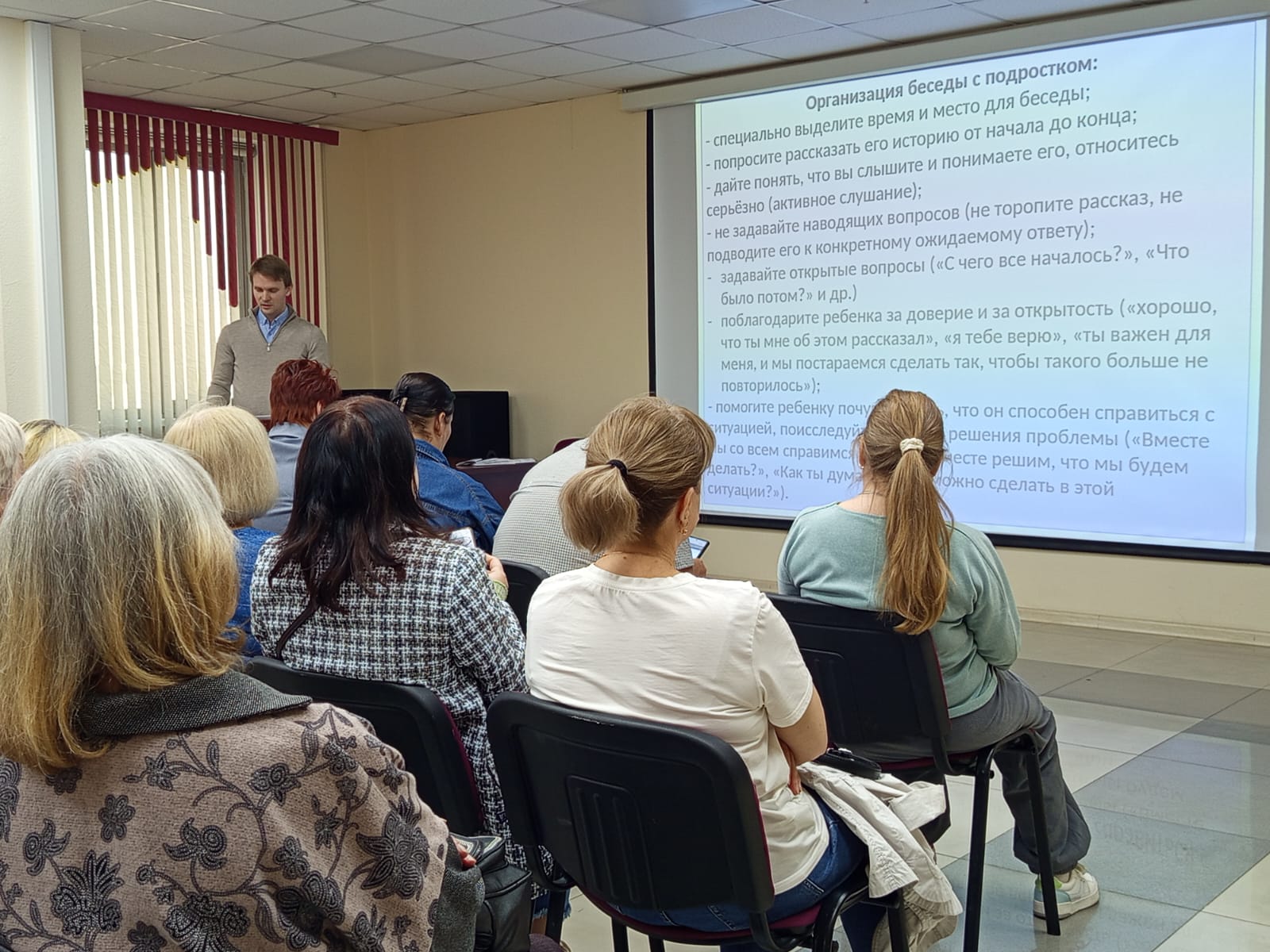Сергей Викторович обозначил внешние признаки психоэмоционального неблагополучия детей и подростков, а также рассказал о способах его профилактики в домашних условиях. Организаторы и участники собрания положительно отозвались о проведенном мероприятии.